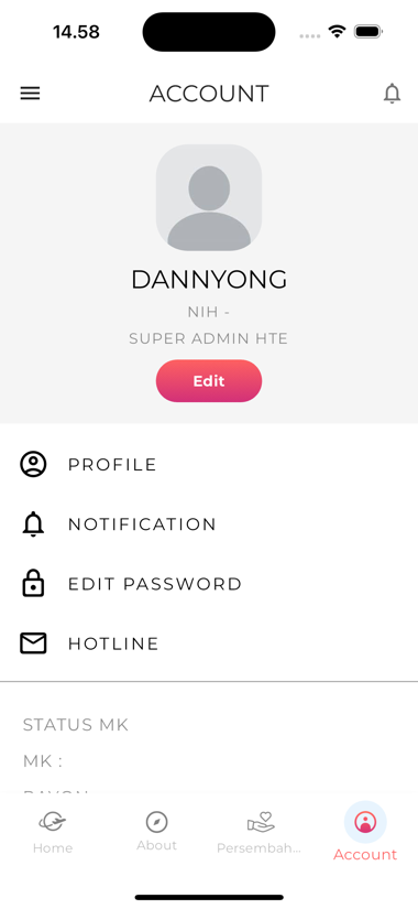 Pada Halaman Dahsboard -> klik menu account pada bottom navigation -> pilih menu hotline -> muncul kontak suport yang dapat dihubungi.